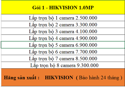 TRỌN BỘ CAMERA HIKVISION 1.0 MP