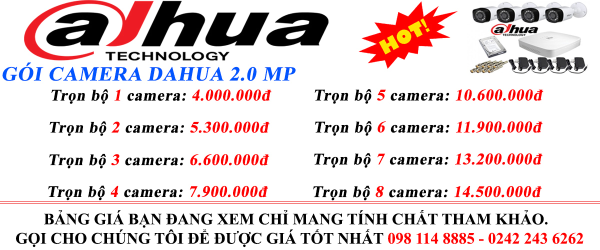 – Giá trên đã bao gồm trọn gói không phát sinh gì thêm trong quá trình lắp đặt (trừ trường hợp lắp vượt quá số dây khuyến mãi, khách hàng có nhu cầu nâng cao dung lượng ổ cứng để lưu trữ hình ảnh lâu hơn, phát sinh ống ghen nhựa, ghen con sâu,kệ đỡ, hộp kỹ thuật, chạy dây ngầm trong tường, và một số vật tư do yêu cầu riêng của khách hàng ).