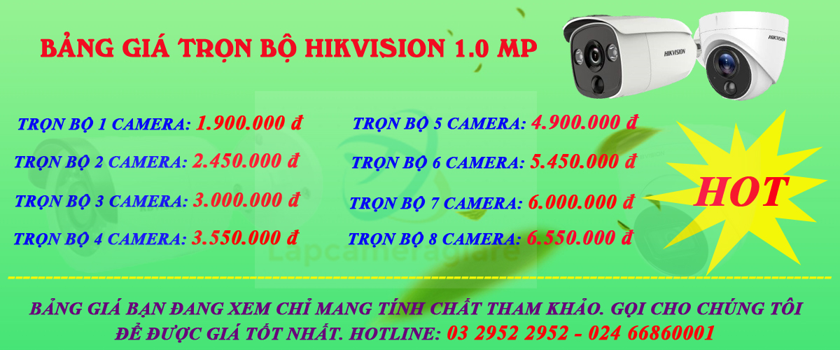 – Giá trên đã bao gồm trọn gói không phát sinh gì thêm trong quá trình lắp đặt (trừ trường hợp lắp vượt quá số dây khuyến mãi, khách hàng có nhu cầu nâng cao dung lượng ổ cứng để lưu trữ hình ảnh lâu hơn, phát sinh ống ghen nhựa, ghen con sâu,kệ đỡ, hộp kỹ thuật, chạy dây ngầm trong tường, và một số vật tư do yêu cầu riêng của khách hàng ).